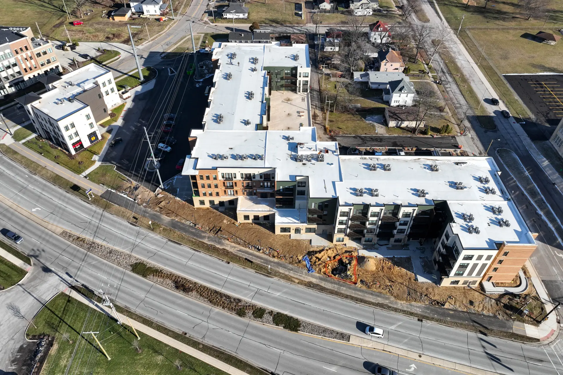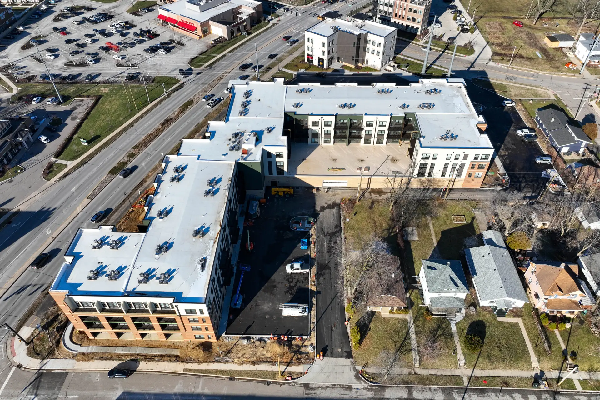 Horizon Construction Group, Inc. is the general contractor for 5 Corners. This project will include two separate buildings. One building will consist of 108 apartments over a garage podium and the other is four (4) 3-story condo-style apartments over 15,000sf of retail space. The community is near the University of Notre Dame and will feature outdoor amenities including a game court, grilling station, TV/lounge areas, fire pit, and pet run. The clubhouse will feature a fitness center, business center, leasing office, and recreation room.