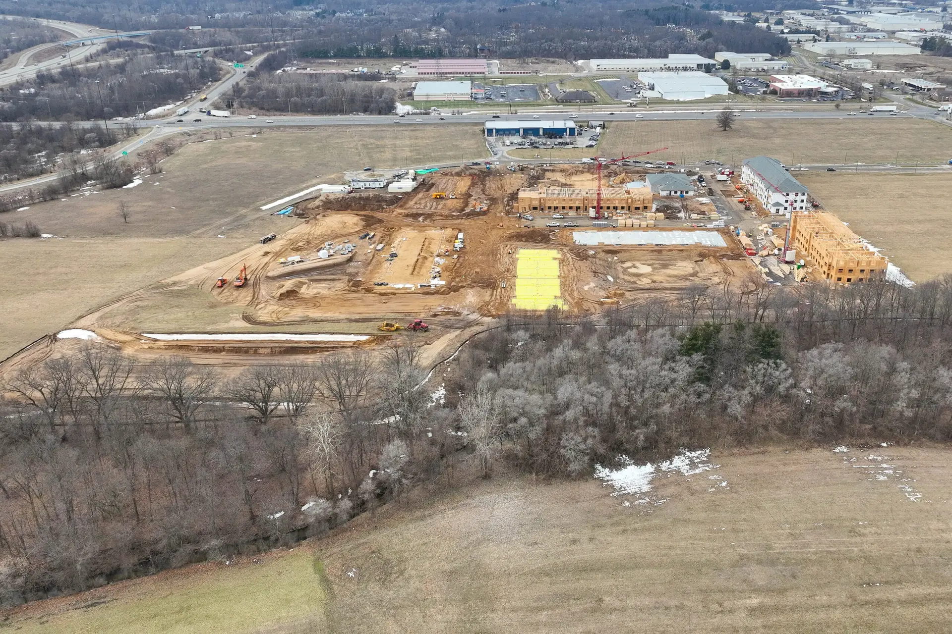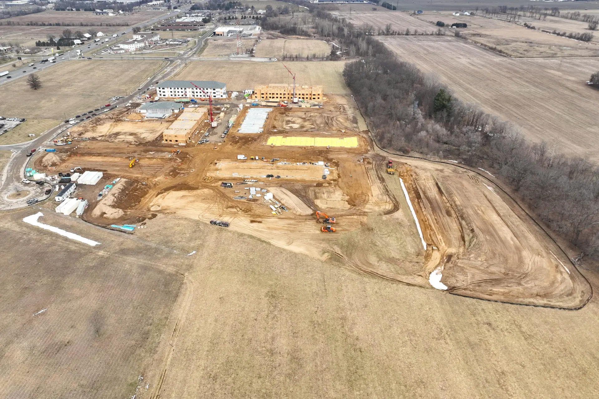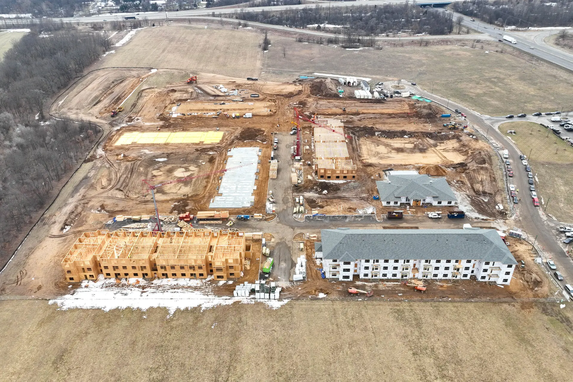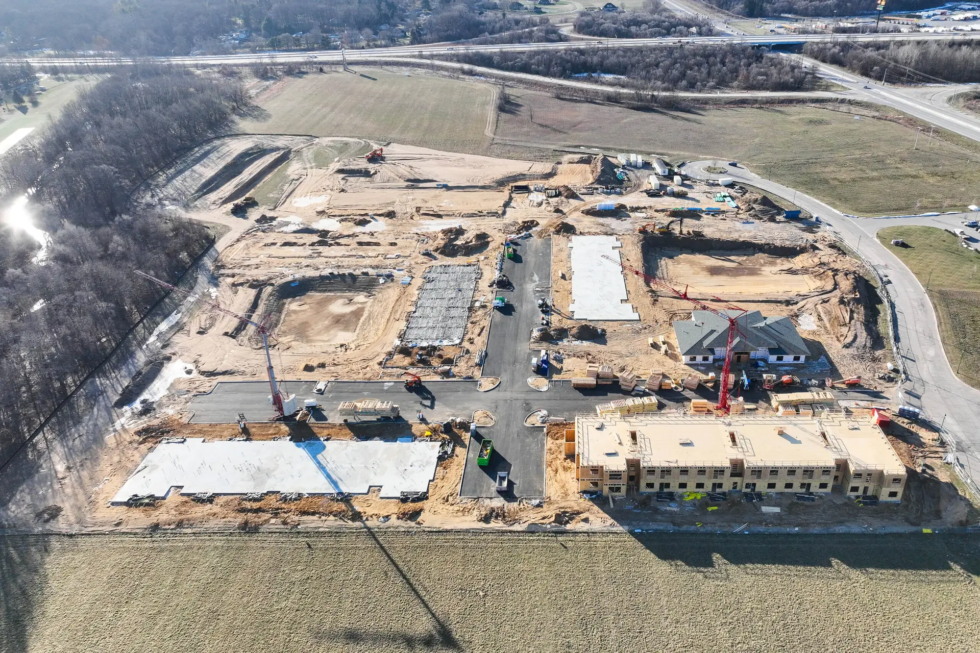 Horizon Construction Group, Inc. is the general contractor for Flats at Pinecreek. Located in Elkhart, Indiana, this project will include eight buildings with a mix of one-, two-, and three-bedroom apartments totaling 252 units. Apartments will feature kithcen islands with penninsula seating, energy-efficient appliances, large windows, in-unit laundry and a patio or balcony.