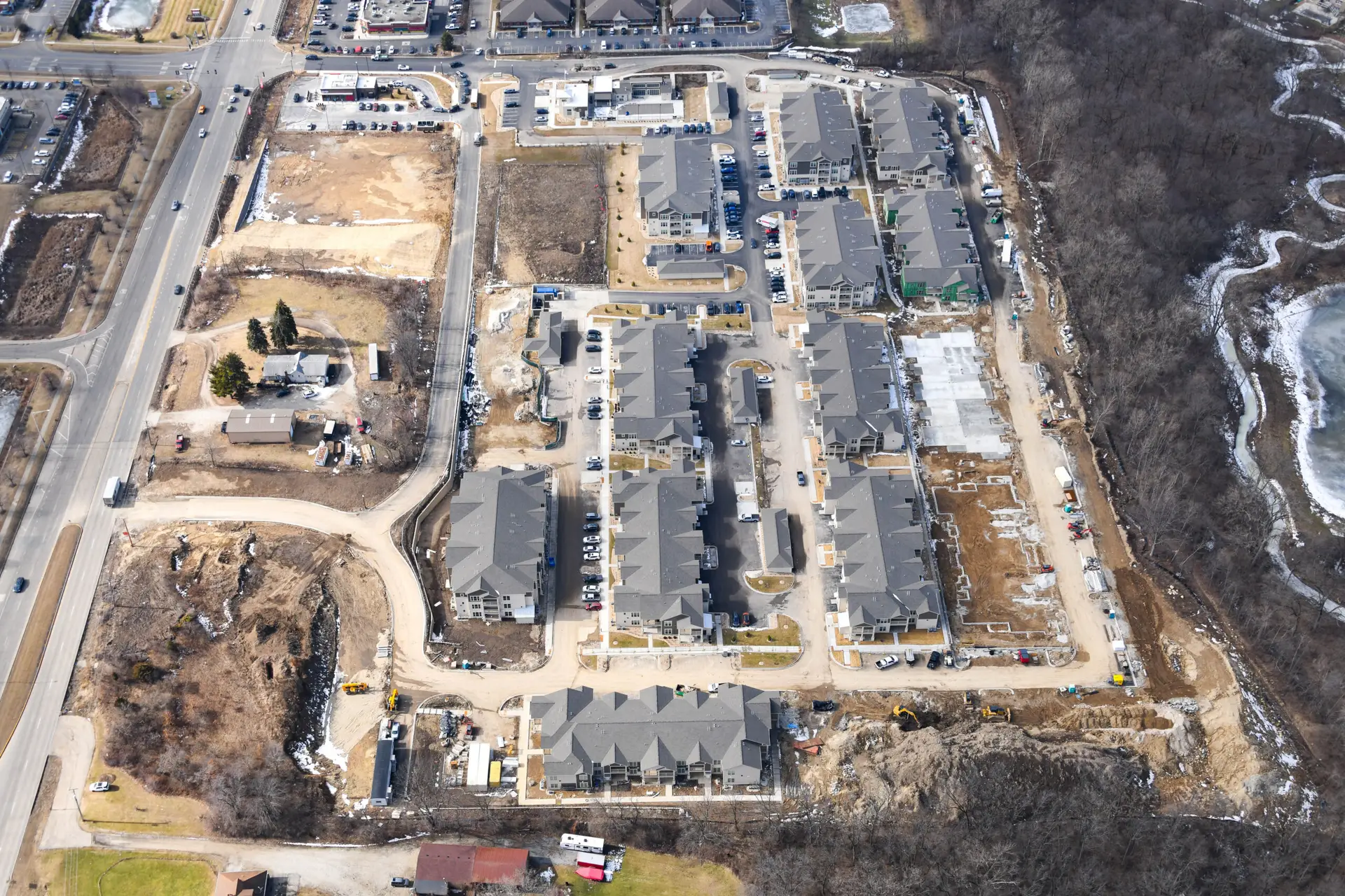• Building Components: 14 residential buildings, wood-framed, slab on grade, garage bays
